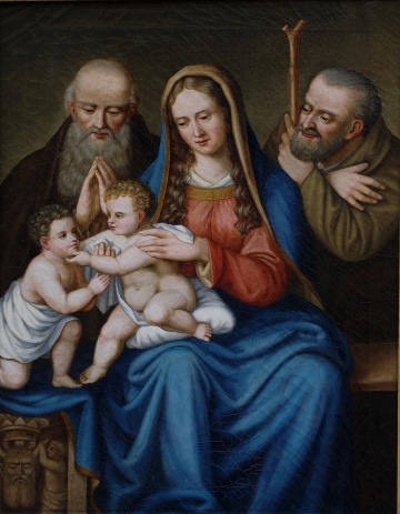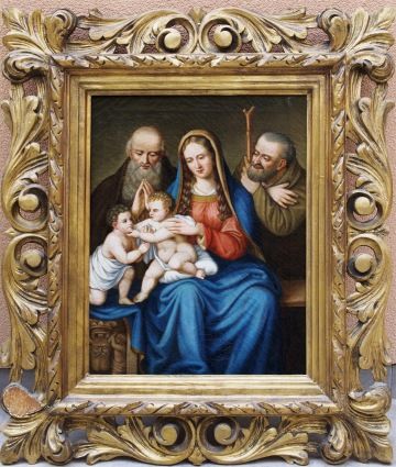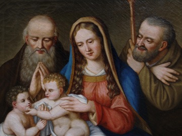 When shopping over 50 000 Kč Free transport.Marie, Josef, Christopher, Jesus and Jan the Baptist, oil on canvas, 19th century Germany, carved frame, export permit, width 400 mm, height 650 mm