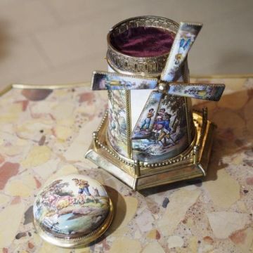 When shopping over 50 000 Kč Free transport.brass, enamels with views, museum piece in perfect condition, width: 170 mm, height: 230 mm, depth: 170 mm, Vienna, Austria 1850
