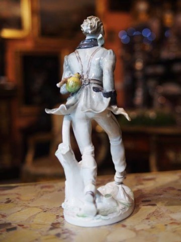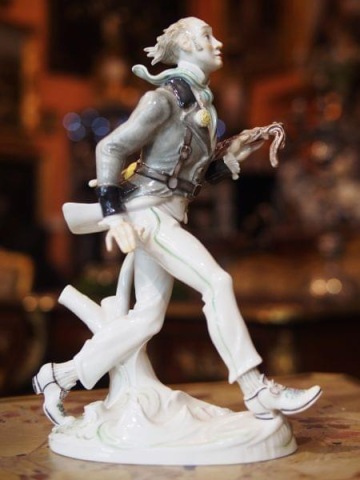 Při nákupu nad 50 000 Kč doprava zdarma.porcelánová soška populární postavy Petera Schlemihla, z románu Peter Schlemihls wundersame Geschichte (Podivuhodný příběh Petera Schlemihla), který roku 1814 vydal francouzský exulant Adelbert von Chamisso) originál v němčině), porcelán bílý, malovaný, glazovaný, značeno Míšeň, výška: 250 mm, Prusko 1910