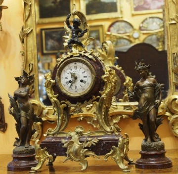 Stolní hodiny: Putto a dvě tančící víly
