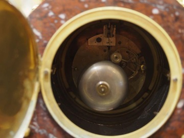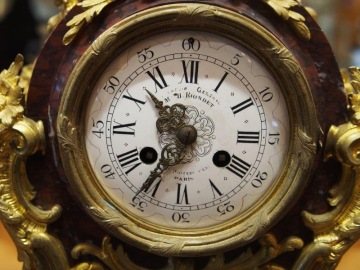 Při nákupu nad 50 000 Kč doprava zdarma.zlacený bronz, mramor, smaltovaný ciferník, půlový stroj, Francie 1880, signováno Maison H. Riondet, šířka: 360 mm, výška: 600 mm