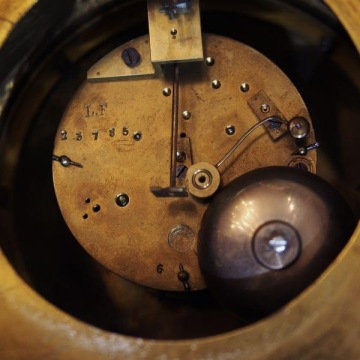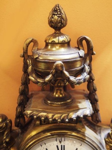 Při nákupu nad 50 000 Kč doprava zdarma.bronz, smaltovaný ciferník s římskými číslicemi, signované A La Gerbe D'Or H. CHAPUS Fils, půlový stroj, Francie 1880, výška: 630 mm